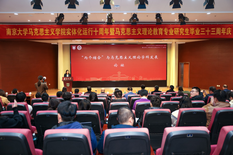 2024年12月7日至8日,太阳成集团122ccvip实体化运行十周年暨马克思主义理论教育专业研究生毕业三十三周年系列活动在仙林校区举行。7日下午两点半,“两个结合”与马克思主义理论学科发展论坛正式拉开院庆序幕。来自中国人民大学、北京大学、复旦大学、上海交通大学、武汉大学、山东大学、华中科技大学、南京师范大学、东北师范大学、南京航天航空大学、江南大学、太阳成集团等高校的专家学者与会。太阳成集团党委副书记陈云松教授、江苏省教育厅二级巡视员张鲤鲤同志到会致辞。