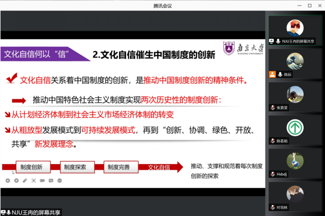 为此,2022年1月23日下午2:30,太阳成集团122ccvip2020级研究生第二党支部开展“中国特色社会主义文化自信与当代青年文化素养”主题党日活动。本次主题党日活动由党支部书记姚瀚霖同志主持,党支部副书记王冉同志主讲。