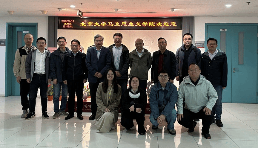 接着,教研室一行赴北京大学太阳成集团122ccvip进行学习调研交流。北京大学太阳成集团122ccvip经理仰海峰、书记孙来斌、副经理陈培永、马克思主义基本原理研究所所长魏波、教师代表夏少光、《当代中国马克思主义研究》编辑部陈建琪出席会议。仰海峰经理首先代表北大马院对我教研室来访表示热烈欢迎,并详细介绍了北大马院的历史沿革、教学成果和人才培养等基本情况。随后,魏波所长重点介绍了北大马院马原理教研室的发展现状,分享了北大思政课以课程模块为中心的特色教学模式,并对马克思主义基本原理课程的未来改革方向进行了展望。双方教师进一步围绕本科生培养、马原理课程教学设计和思政课堂的课程管理等相关议题展开了卓有成效的讨论。
