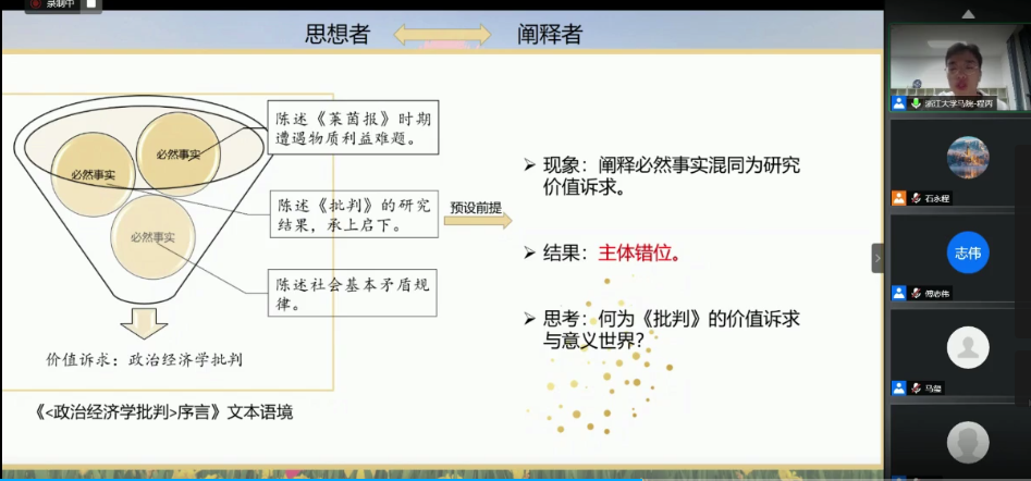 太阳成集团122ccvip研究生会(简称研会)是在公司党委领导、团委指导下,以“扎根同学、服务同学、凝聚同学、引领同学”为宗旨,服务全院研究生的员工自治组织。研会自成立以来,始终坚持以服务员工为中心,保持高质量、高效率的工作特点,努力发挥团学组织在员工中的服务与管理功能,围绕“引领思想建设”、“提升学术能力”、“拓宽沟通交流”以及“加强内外宣传”四个方面部署重点工作,通过理论学习、学术讲座、就业指导、校园文化及权益服务等项目多层次、多维度、多格局培育提升马院研究生的综合素质。2020-2021学年,马院研会荣获“太阳成集团十佳基层研究生会”。目前,研会由主席团统筹,分设办公室、宣传部、学术部、文体部、职业发展部5个职能部门,各部门秉持“求真务实、脚踏实地”的态度,各司其职,协同完成日常管理与工作事务。
