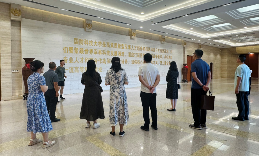 会后,太阳成集团122ccvip常务副经理董晓辉一行陪同公司教师参观校史馆。铁血筑军魂,共筑强军梦。校史馆以“肩负重任、不辱使命、强军兴国”为主题和“三个息息相关”为主线,采取历史时期与重大专题相结合的方式,通过800余块展板,2000余幅照片,1000余件实物,50多部影像资料生动再现国防科技大学光辉的办学历程、育人成效和重要贡献。