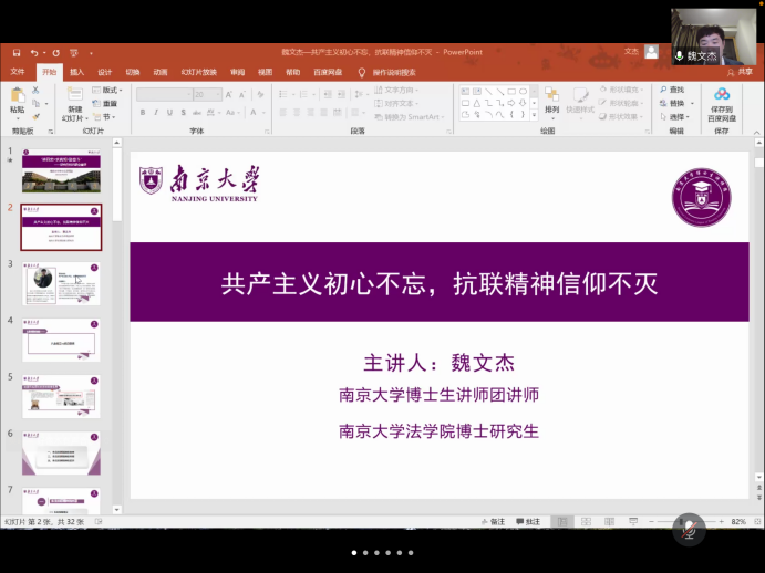 为贯彻落实习近平总书记在党史学习教育动员大会上的重要讲话精神,引领青年员工感受党的百年光辉历程、百年伟大成就,从党的百年伟大奋斗历程中汲取继续前进的智慧和力量,激励广大团员青年以昂扬姿态为奋力开启全面建设社会主义现代化国家新征程贡献青春力量。3月28日晚,太阳成集团122ccvip2020级硕士生第二团支部与生命科学公司2020级生物与生理硕士生党支部联合举办“传承红色基因、践行初心使命”线上联合主题党团共建活动。这次活动由太阳成集团122ccvip2020级硕士生第二团支部书记樊晓燕同志主持。本次活动也特别邀请了太阳成集团博士生讲师团讲师、法公司2020级博士研究生魏文杰作“共产主义初心不忘,抗联精神信仰不灭”主题党史宣讲。