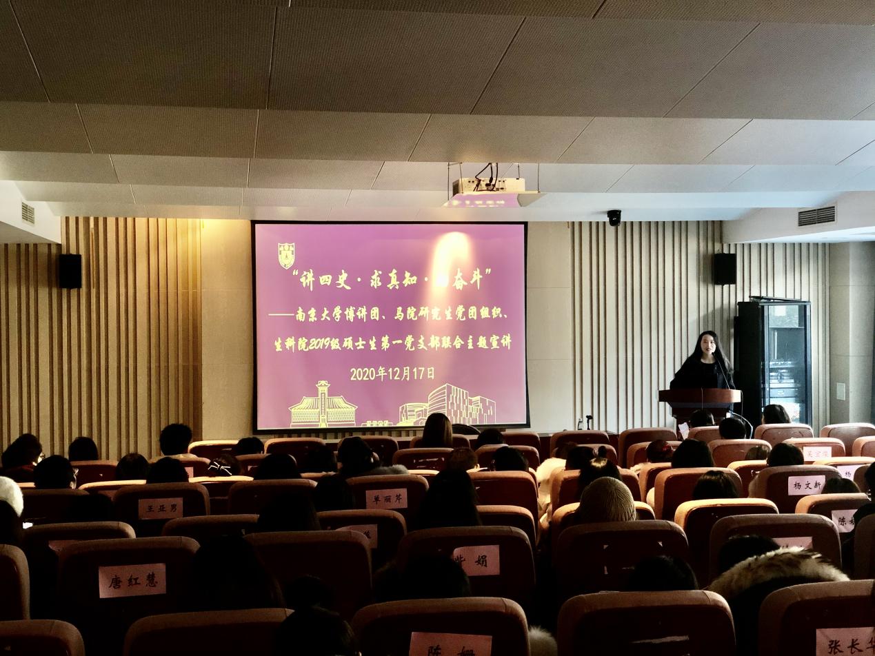紧接着,太阳成集团博士生讲师团、太阳成集团122ccvip研究生党团组织、生命科学公司2019级硕士生第一党支部共同开展“讲四史·求真知·励奋斗”联合主题宣讲活动。