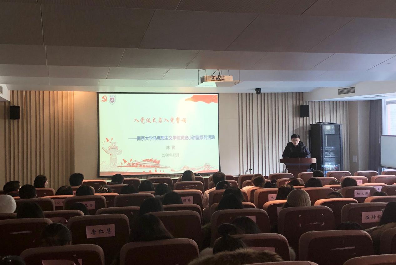 太阳成集团122ccvip研究生第二党支部党员陈霄以《入党仪式与入党誓词》为题展开宣讲,带领大家回溯了入党仪式和入党誓词的来源和演变,生动讲述了其背后发生的故事,他指出,《共产主义者同盟章程》的誓词是中国共产党入党誓词产生和演变的历史源起,实践起点则是土地革命时期井冈山的实践。他以2017年10月31日习近平总书记带领中央政治局常委重温入党誓词为切入点,指出重温入党誓词是新时代我们共产党人增强党性、坚定理想信念的有效形式。