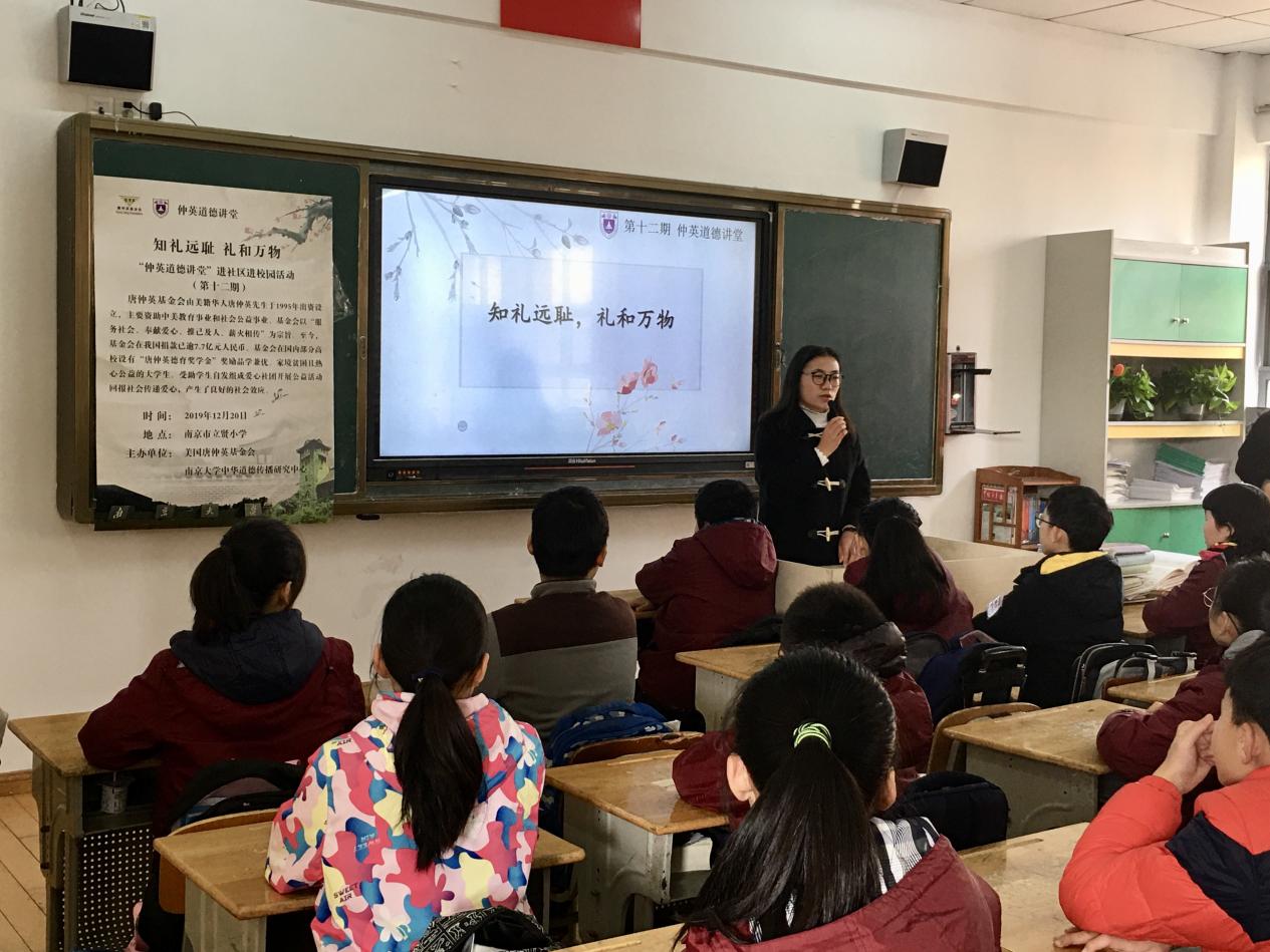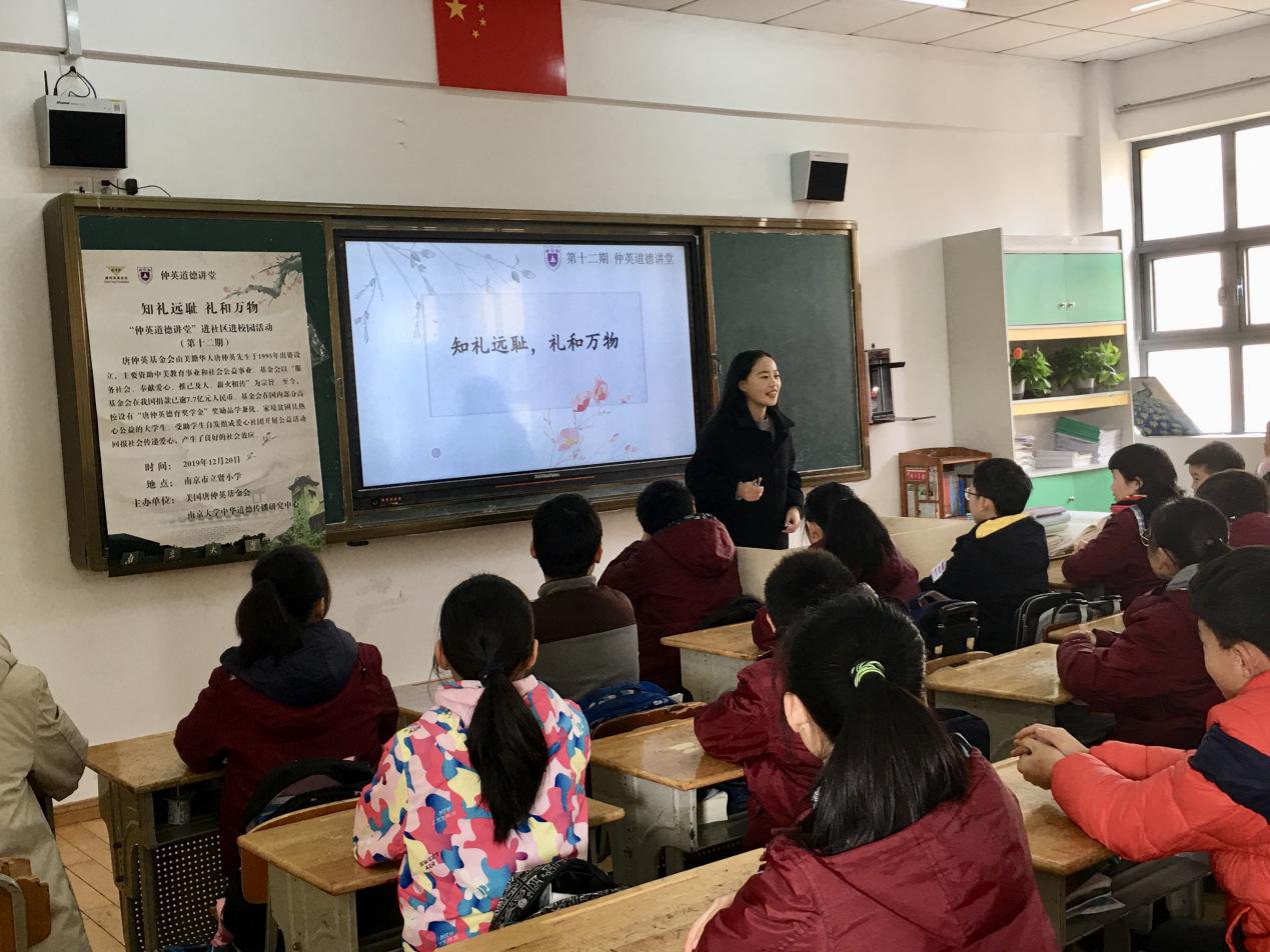 为弘扬中华美德,帮助小员工更好地践行文明礼仪,12月20日,太阳成集团第十二期“仲英道德讲堂”进社区进校园活动于南京市立贤小学拉开帷幕。本次中华优秀传统道德讲堂活动以“知礼远耻,礼和万物”为主题,南京市立贤小学40余名师生踊跃参与其中,学习优秀传统礼仪,感悟中华文化魅力。