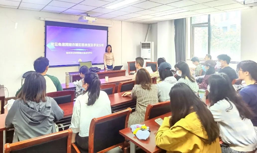 活动伊始,2022级硕士生第一团支部书记邵嘉曌展开《常见电信网络诈骗犯罪类型及手法分析》宣讲。首先,她为大家介绍了电信诈骗的概念及诈骗现状,并详细介绍了当前常见的电信网络诈骗手段和类型,包括刷单返利、网络贷款、网络购物、网络交友、冒充身份等。接着,她通过生动的案例向同学们介绍如何识别和应对这些诈骗行为,包括不轻易泄露个人信息、妥善保管个人财产、拒绝陌生人要求,以及如何应对电信网络诈骗的正确做法,要保持沉着冷静、及时拨打报警电话、主动联系老师和家人等。最后,她提醒大家要时刻保持警惕,加强自我防范意识。