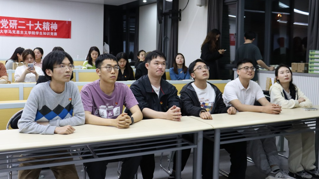 在同学们此起彼伏的喝彩声、鼓掌声中,第一轮比赛圆满结束,同学们既有紧张注视的目光,也有正确回答后的灿烂笑容。最终,21级硕士生二支部、22级硕士生一支部、22级硕士生二支部和院团委研会代表队成功晋级。