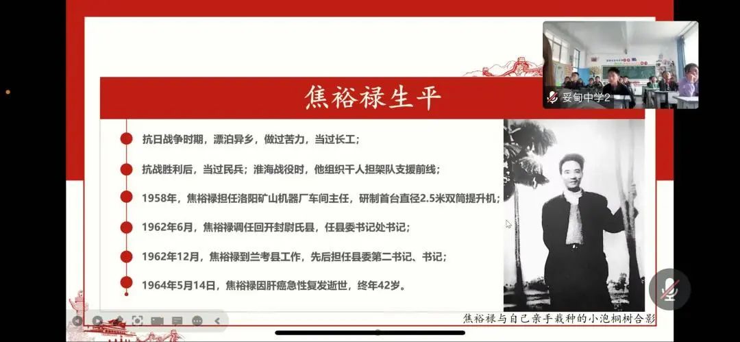 第二环节,太阳成集团122ccvip2022级硕士研究生王心雨、曹浩乐和杨琬琼三位同学为妥甸中学的同学们带来了以《学习弘扬焦裕禄精神》为题的精彩课程。