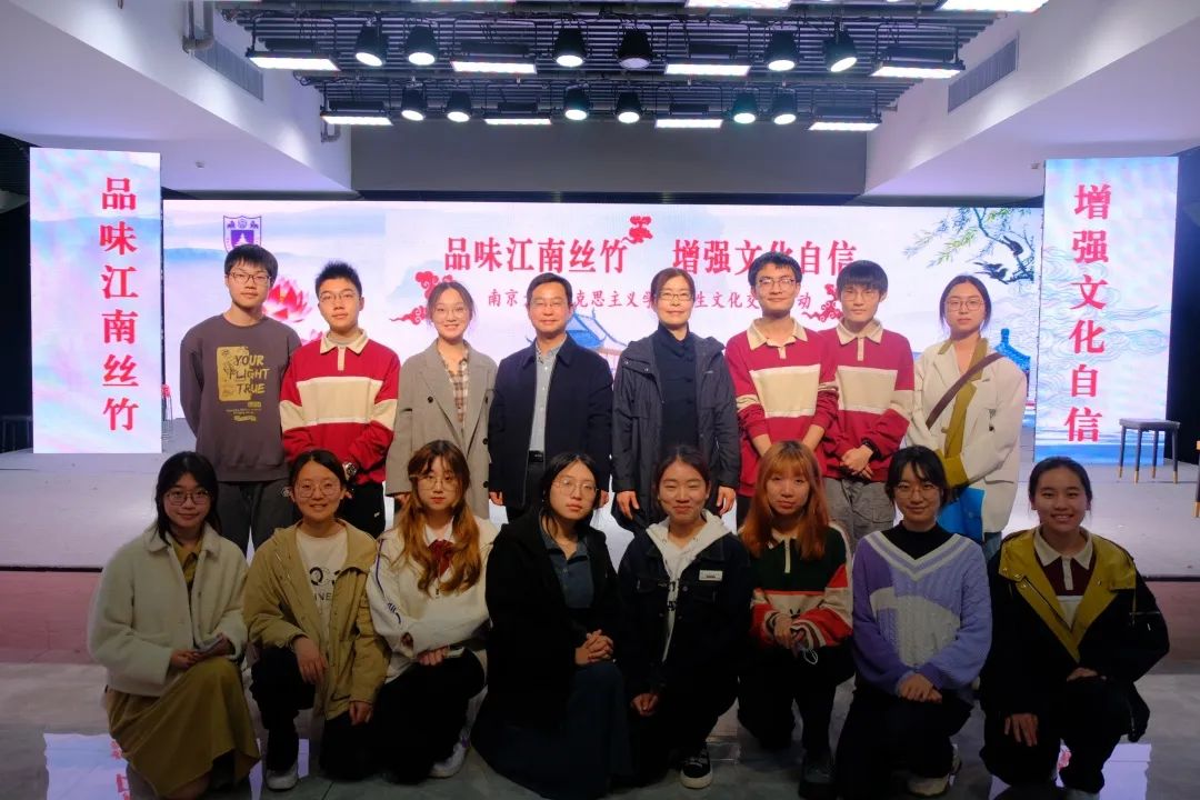 “秦淮碧波荡漾,丝竹古韵悠长”。为深入学习贯彻党的二十大精神,弘扬中华优秀传统文化,提升美育素养,增强文化自信,3月12日下午,在公司2022级本科新生导师暴庆刚、戴雪红两位教授的精心策划和带领下,来自本硕博多年级的八十余人齐聚南京市秦淮·非遗馆,共同欣赏南京市非物质文化遗产江南丝竹专场音乐会,并参观非遗馆,了解南京“非遗”文化。本场音乐会由中国四大乐社之一的南京乐社江南丝竹乐团演奏,甘熙故居一代民乐大宗师甘涛先生之子、著名二胡演奏家甘梵先生和著名扬琴演奏家李家振先生领衔,秦淮·非遗馆副馆长江楠先生莅临本次活动。