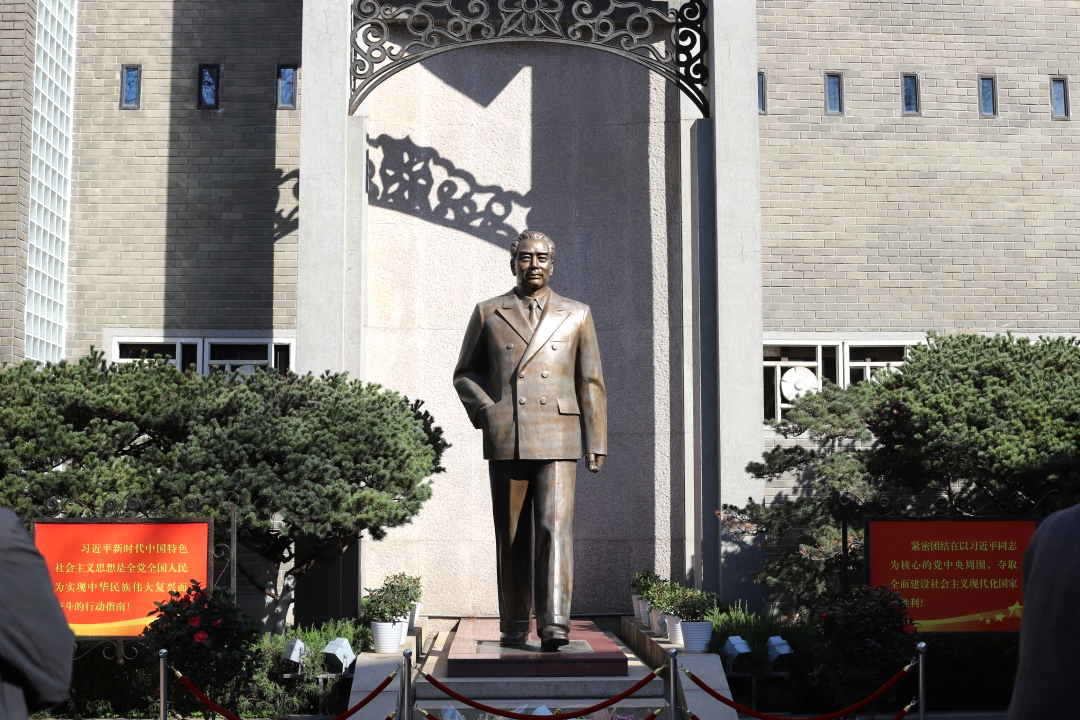 活动伊始,党团支部全体成员肃立于周恩来铜像前,向伟人致以最崇高的敬意。铜像没有基座,仿佛周总理正意气风发地迈步向人们走来。周恩来同志用自己的实际行动,为全党树立了全心全意为人民服务的光辉榜样。