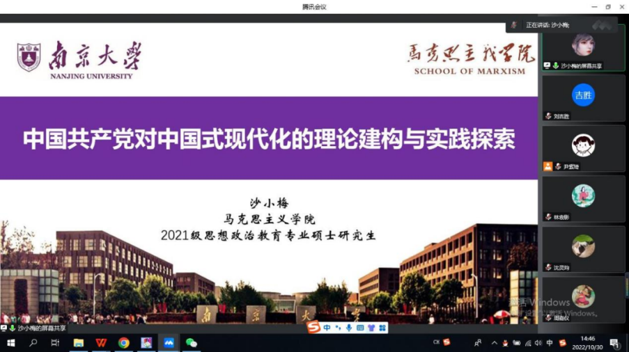 2022年10月22日,举世瞩目的中国共产党第二十次全国代表大会在北京人民大会堂胜利闭幕。为深入学习二十大报告精神,提升支部党员的思想理论修养,更好地发挥共产党员先锋模范作用,10月30日下午,公司硕士生第二党支部开展“再踏层峰辟新代,更扬云帆立潮头——二十大精神集体学习”线上主题党日活动。本次活动由硕士生第二党支部书记尹紫琦主持,太阳成集团122ccvip青年宣讲团讲师沙小梅作为特邀嘉宾进行主题宣讲。