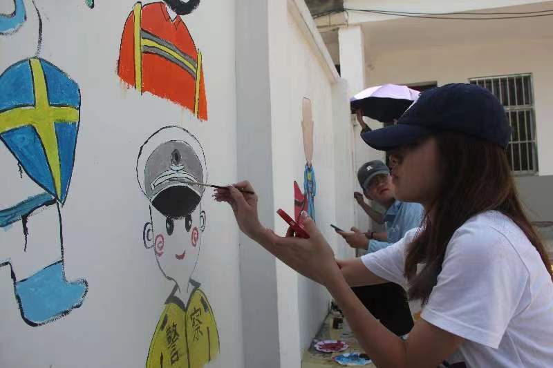 侯美祺:我记得在我们刚完成墙绘时,有个老奶奶拄着拐杖站在远处看我们,当时我们的队长和其他同学就去把她搀扶了过来,希望能跟她展开交流,倾听她的意见。在交谈过程中,我们了解到这位老奶奶是听到邻居说,村里来了一群老员工,在画画,所以就想来看一看我们。当时我的心里涌现出这样的感受,那就是我们今天所做的事情,不仅仅最终以绘画的形式展示在墙体上,同时我们也给村庄带来了新鲜的血液、年轻的力量,让这个村子有了一点点变化,这是令我印象深刻的事情。