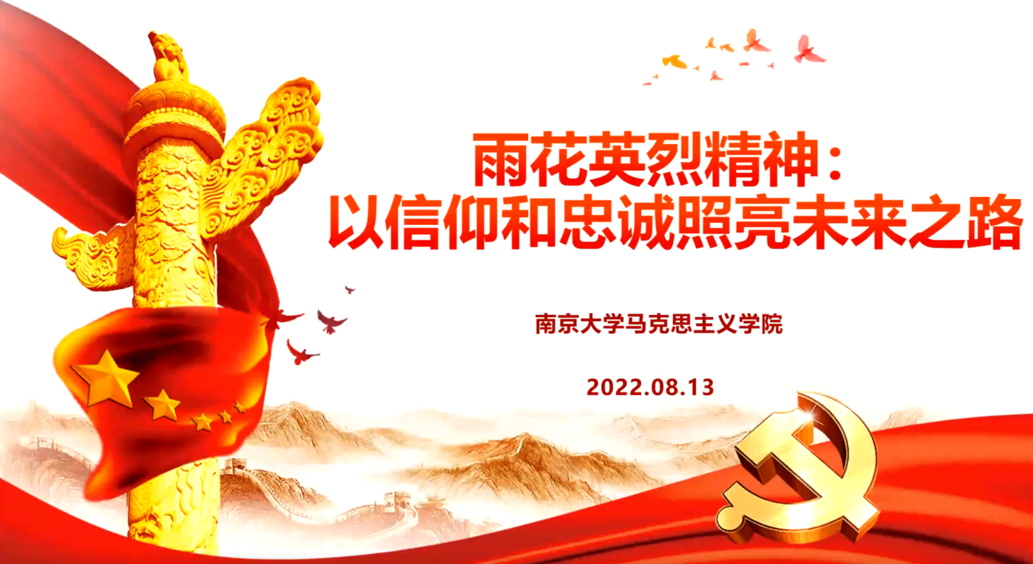 团课第四部分由2020级硕士生第二团支部张素雯同学作“雨花英烈精神——以信仰和忠诚照亮未来之路”主题分享。张素雯同学通过侯绍裘、张炽、谢文锦、恽代英纸短情长的尺素书信,郭纲琳、冷少农公而忘私,国而忘家的动人故事以及谢士炎、朱克靖、史砚芬慨当以慷的诗词片语,讲述在风雨飘摇的革命年代,为谋求民族独立和人民解放的无数志士仁人血洒雨花台的英勇故事,展现了雨花英烈们崇高的理想信念、高尚的道德情操和为民牺牲的大无畏精神。