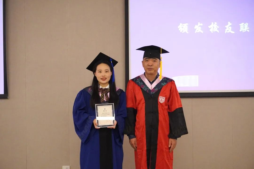 胡大平经理为2019级硕士研究生谢宇嘉宁颁发员工联络员证书。王建华书记为党员代表颁发毕业生党员纪念卡。