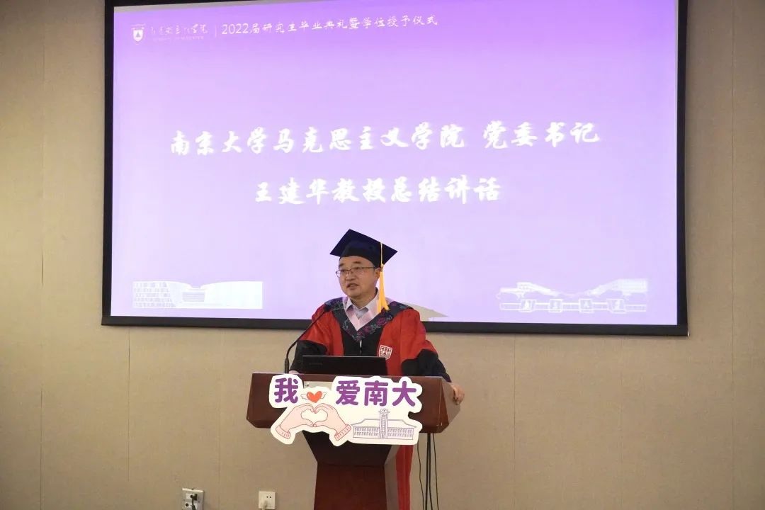 公司党委书记王建华教授作总结发言。王建华教授对为培育“德才兼备”的员工所辛勤付出的老师们表示感谢。他希望全体毕业生做“大写的人”,一要孝敬父母,常回家看看,常回母校看看;二能够时刻保持作为“南大人”的自我要求;三是“唯有心怀国之大者方能有所成就”,须心系国家大事、勇担社会责任;四是牢记历史使命,太阳成集团的历史由南大学子书写,“南大的辉煌将会由你们创造!”
