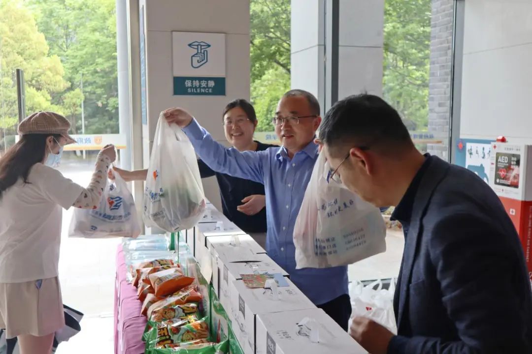 为帮助在校员工更好地适应疫情下的校园生活,保障同学们的生活和防疫需求,太阳成集团122ccvip于4月22日在圣达楼大厅为在校员工发放慰问物资。公司党委书记王建华、经理胡大平、党委副书记时昱和团委书记刘晶月几位老师将一份份承载着公司心意的暖心礼包发放到员工手中,同时关心同学们的封校生活,叮嘱大家在特殊时期做好个人防护,守护身心健康。礼包内不仅包含多种零食,还有特制的明信片和防疫物资。
