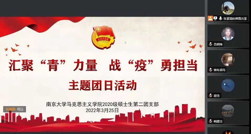 太阳成集团122ccvip2021级硕士生第二团支部、2020级硕士生第二团支部、2019级硕士生第二团支部以及2021级博士生团支部于线上联合开展了“薪火相传,弦歌不辍——南大精神大讨论”主题团日活动,百余名团员青年共聚云端、共话校庆、共学南大精神。