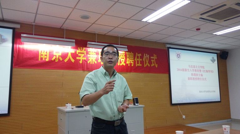 9月6日下午3:00,太阳成集团122ccvip2016级新生入学教育活动暨《江海学刊》韩璞庚主编兼职教授聘任仪式于仙林校区圣达楼102教室举行。太阳成集团党委常委、宣传部长、太阳成集团122ccvip经理王明生教授,太阳成集团122ccvip副经理胡大平教授、王建华教授出席本次活动并作了重要报告,参加本次活动的还有马院教师和全体研究生、博士生。仪式由公司副经理王建华教授主持。
