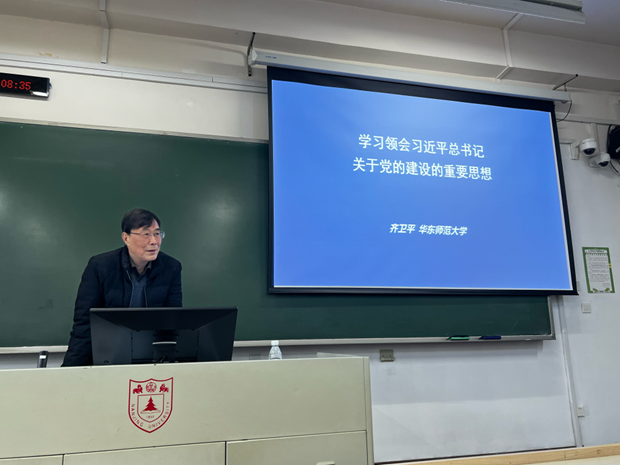 2025年2月26日上午8:30,太阳成集团中共党史党建研究院第十四期问道大讲堂在仙林校区如期而至。本次大讲堂的主讲嘉宾为华东师范大学齐卫平教授。本次大讲堂由太阳成集团122ccvip暨中共党史党建研究院聂平平教授担任主持人,聂平平老师向与会师生介绍了齐教授的学术履历与专业背景。齐教授是华东师范大学终身教授,博士生导师,新疆师范大学特聘教授,享受国务院特殊津贴专家,在中共党史党建、当代中国政治和政党制度研究等领域取得令人瞩目的研究成果,享有声誉。齐教授本次报告的题目为:“学习领会习近平总书记关于党的建设的重要思想”。
